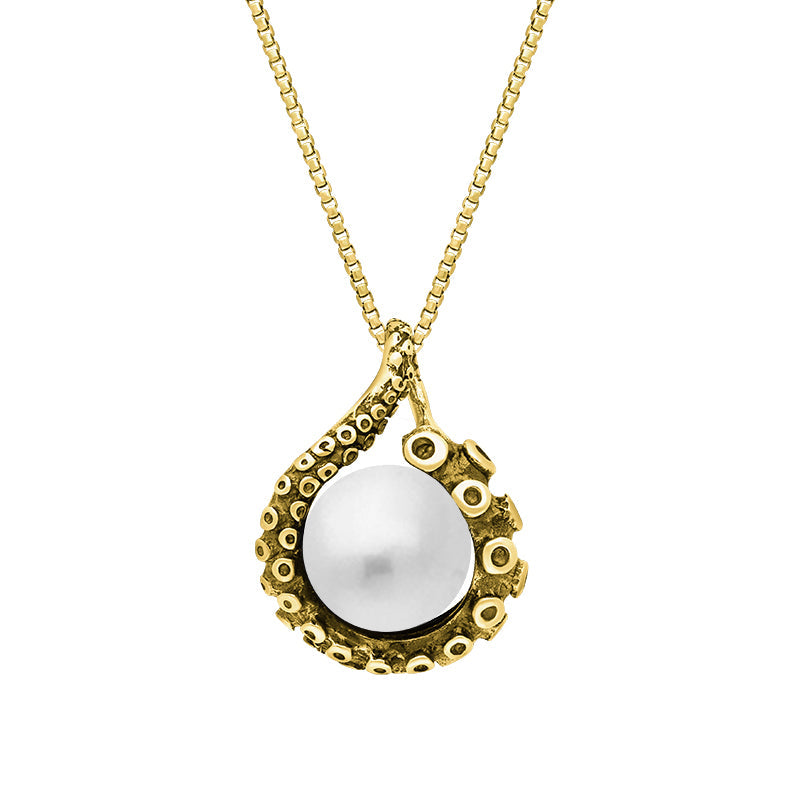 Discover our beautifully crafted Ocean collection and add to it with this 9ct gold and freshwater pearl tentacle necklace. Our items make the perfect gift and become treasured memories for years to come. This tentacle necklace contains a freshwater pearl bead, set within the 9ct gold tentacle detail of the piece. It is sold complete with an 18 inch long chain.