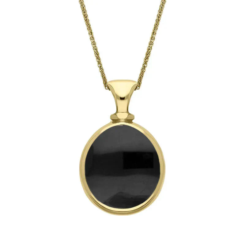 9ct Yellow Gold Whitby Jet White Mother Of Pearl Small Double Sided Pear Fob Necklace, P220.