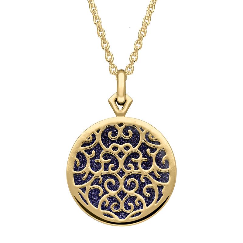 9ct Yellow Gold Blue Goldstone Flore Filigree Necklace P2339C
