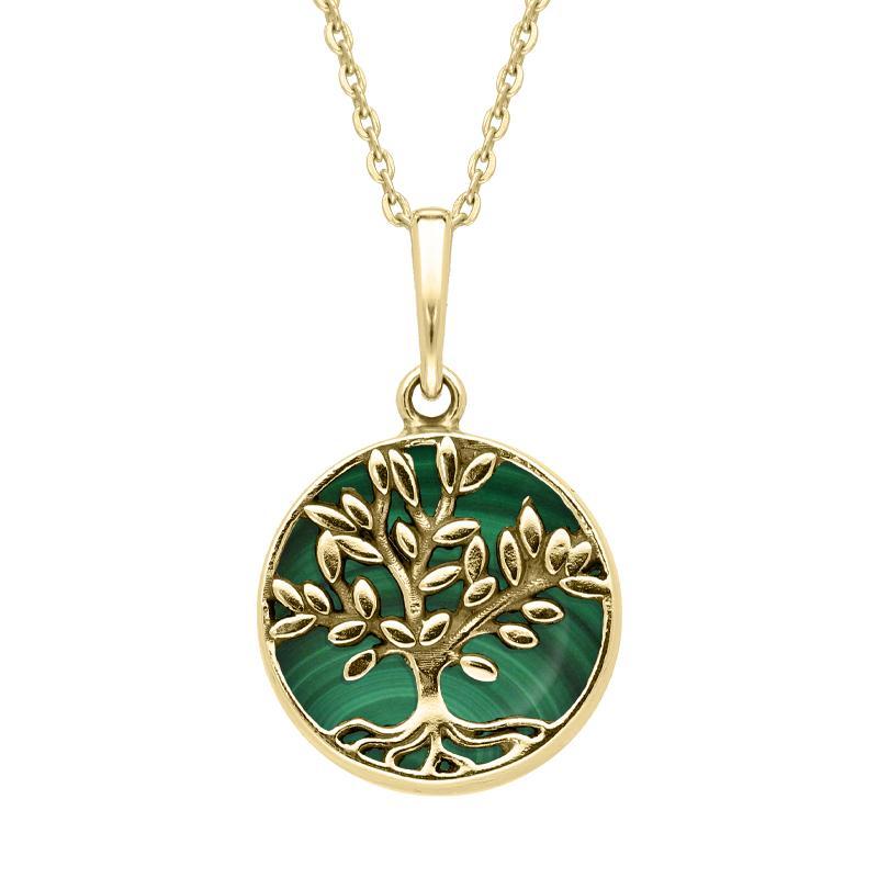9ct Yellow Gold Malachite Small Round Large Leaves Tree of Life Necklace, P3340.