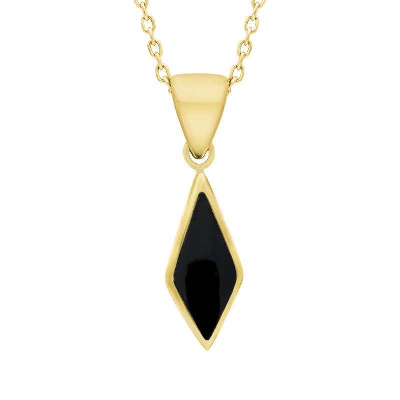 This simple and sophisticated necklace is part of our Heritage handmade jewellery collection and boasts a diamond shaped piece of fine Whitby Jet stone that has been sourced locally from the Whitby coastline, North Yorkshire. The stone is framed within an exquisite 9ct Yellow Gold setting. The pendant sits gracefully on a 9ct Yellow Gold chain that is completed by a classic bolt ring clasp for easy wear.