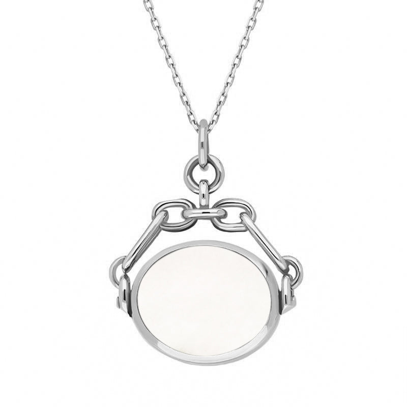 This classic fob swivel necklace is part of the Shop Amber Heritage handmade collection and features double sided pendant set with oval cut locally sourced Blue John and White Mother Of Pearl. The stones are set in a hinged sterling silver pendant, which moves with the wearer and features a unique open chain design, hanging gracefully from an 18 inch sterling silver chain.