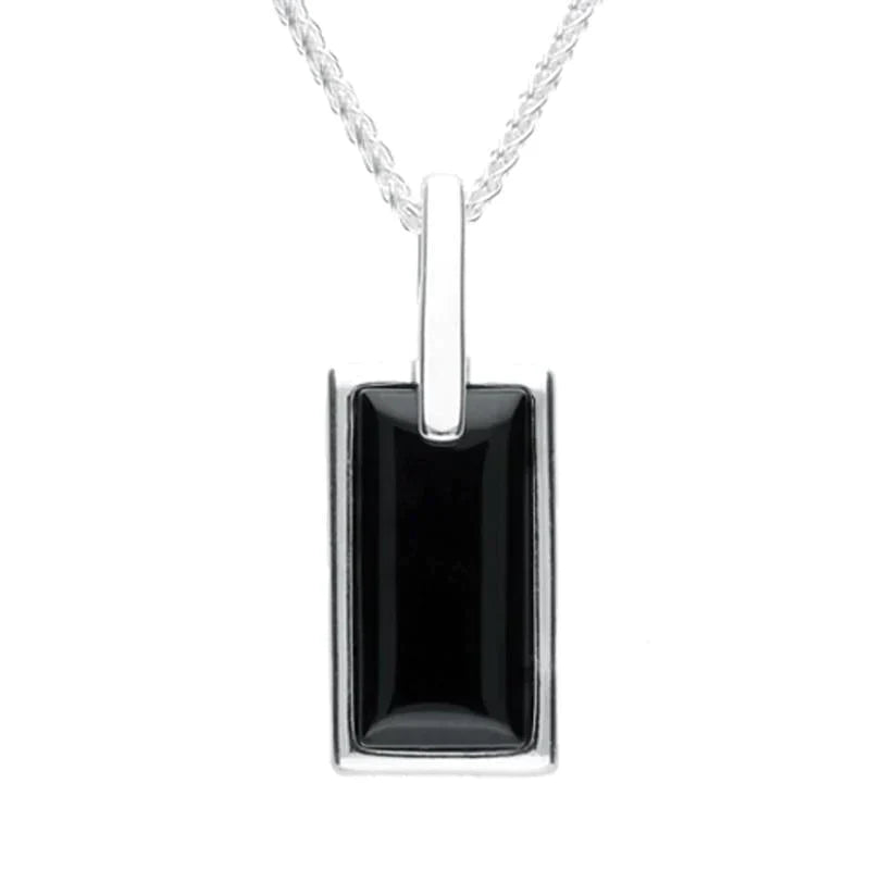 Sterling Silver Whitby Jet Heritage Rectangle Necklace