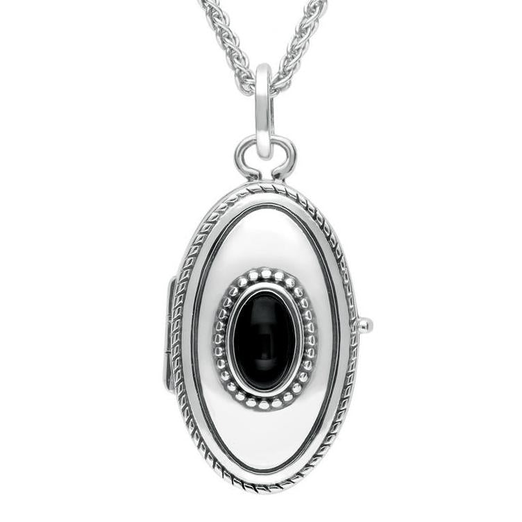 Sterling Silver Whitby Jet Oval Locket, P2089.