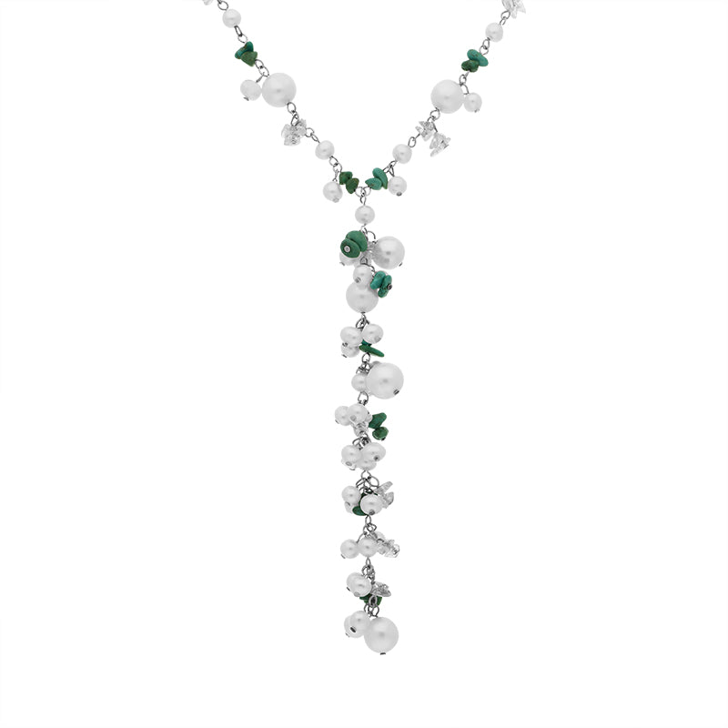 Sterling Silver Freshwater Pearl Turquoise Bead Drop Necklace D