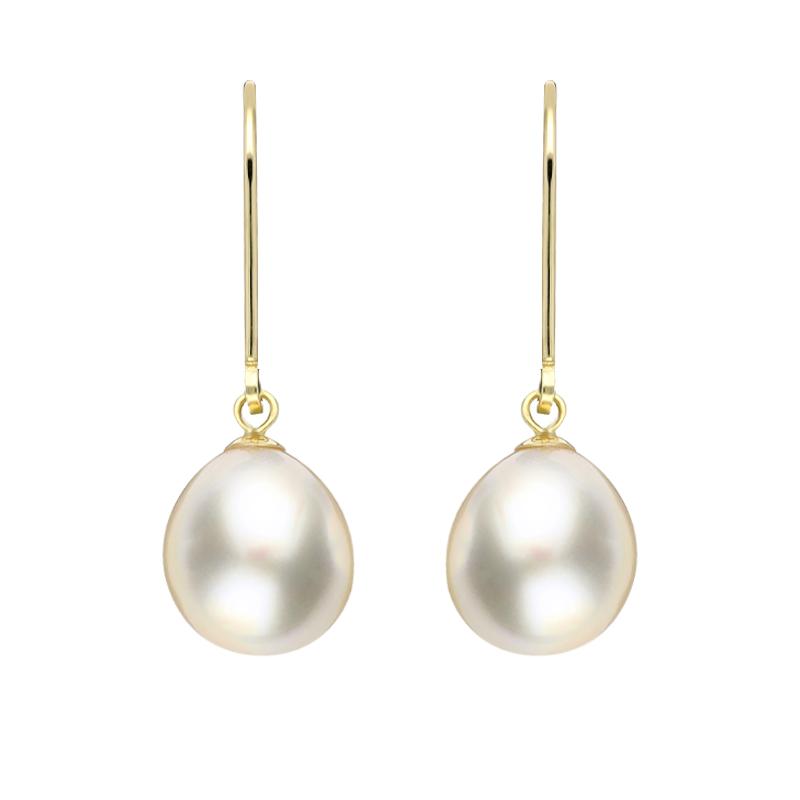 • 18ct Yellow Gold White Pearl 9mm Lever Back Drop Earrings - E2518 (LFS-009)