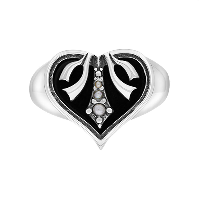 This unique ring features the finest Whitby Jet and Freshwater Pearl. The Whitby Jet creates a stunning contrast between the Pearl and sterling silver, perfect for someone looking to add to their collection.