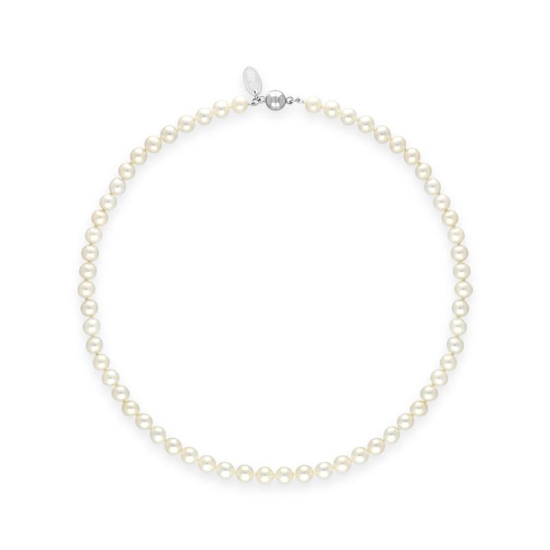 This stunning necklace features 6mm, round white pearls strung together with a 7mm sterling silver magnetic ball clasp, for ease and added security. A classic and beautiful addition to any jewellery collection, perfect for every day wear.
