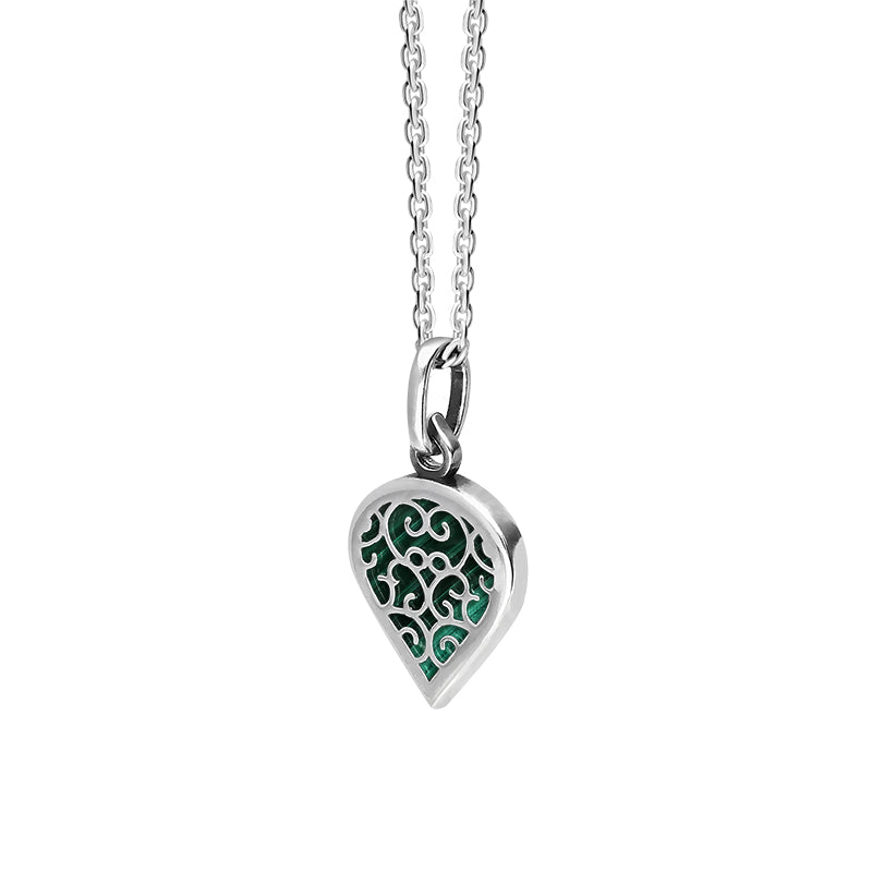 9ct White Gold Malachite Flore Filigree Small Heart Necklace