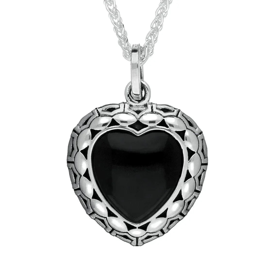 Sterling Silver Whitby Jet Oxidised Heart Necklace