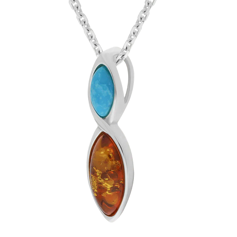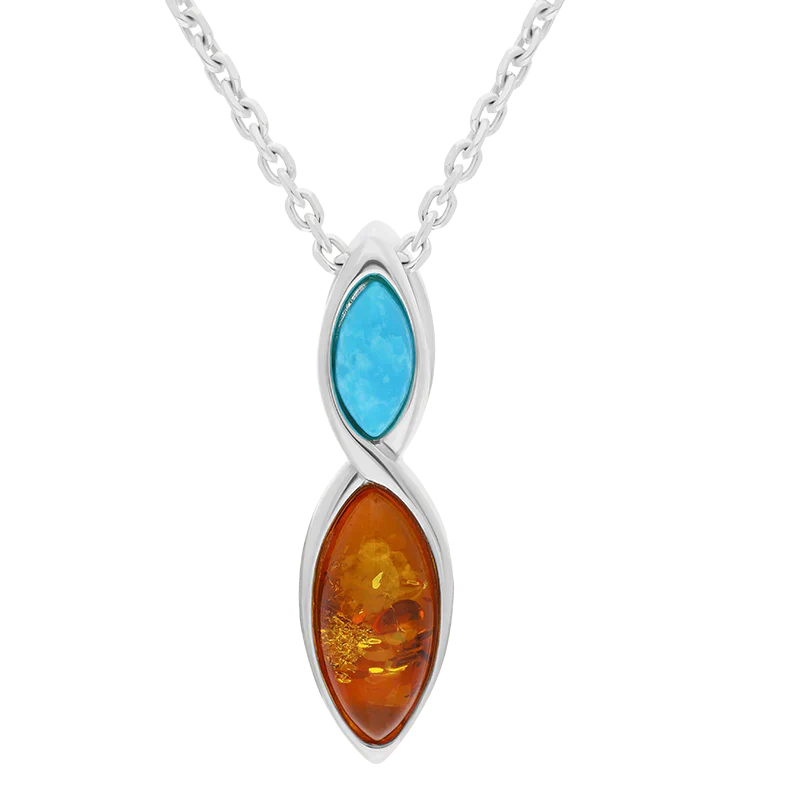 Sterling Silver Amber Turquoise Two Stone Marquise Necklace