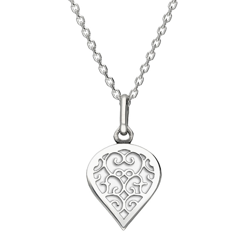 Sterling Silver Bauxite Flore Filigree Small Heart Necklace. P3629.