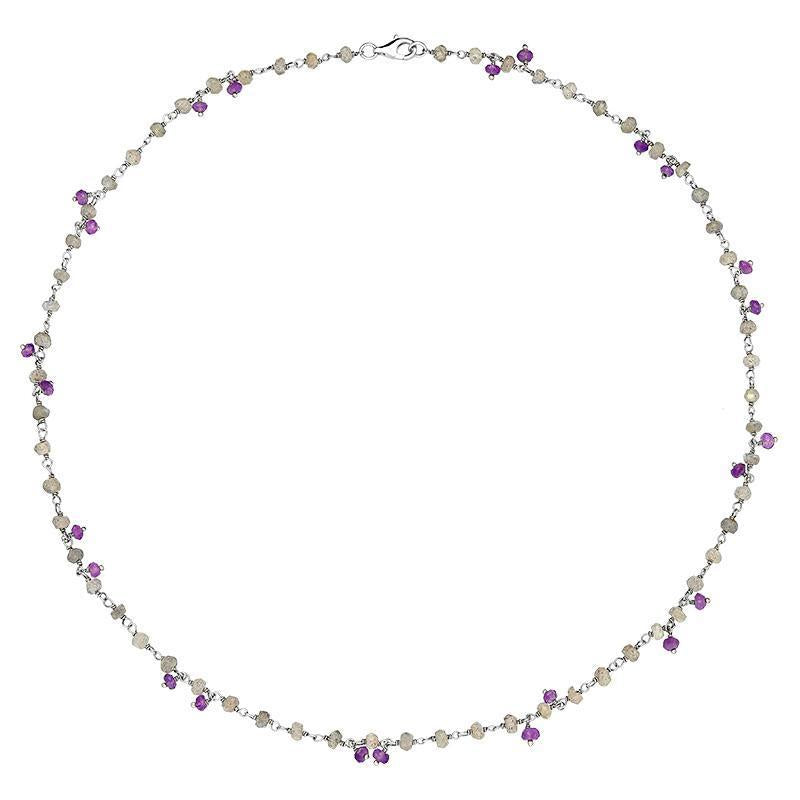 This Labradorite, Amethyst and sterling silver Shop Amber necklace features 4mm sized Labradorite gemstones adorned with additional Amethyst gemstones, making a stunning contrast, set on a delicate sterling silver chain link bracelet.  A perfect gift for someone special.