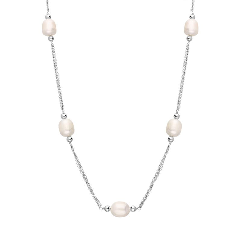 Feminine and elegant, this stunning necklace has been finely handcrafted in sterling silver and features three strands, adorned with lustrous white pearls and sterling silver beads. Perfectly designed for everyday wear, this exquisite pearl set necklace will add a touch of luxury to any look.