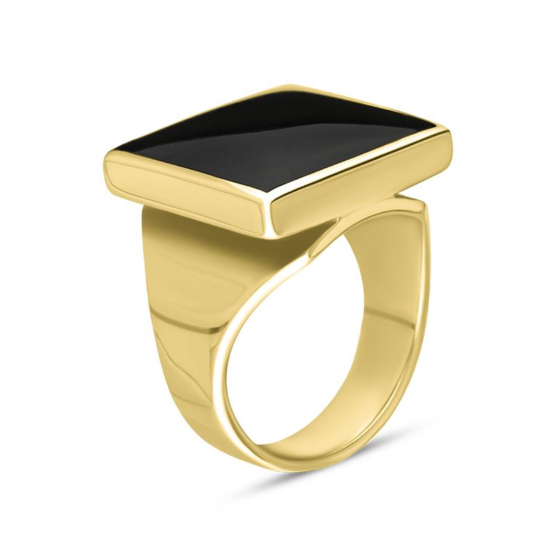 Click here to be notified by when 9ct Yellow Gold Whitby Jet Small Square Ring becomes available.
