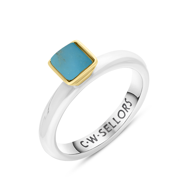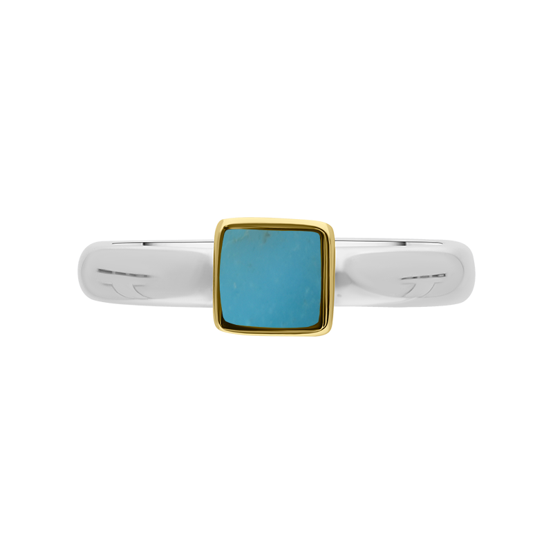 9ct Yellow Gold Sterling Silver Turquoise Stepping Stones 5mm Square Bezel Set Ring