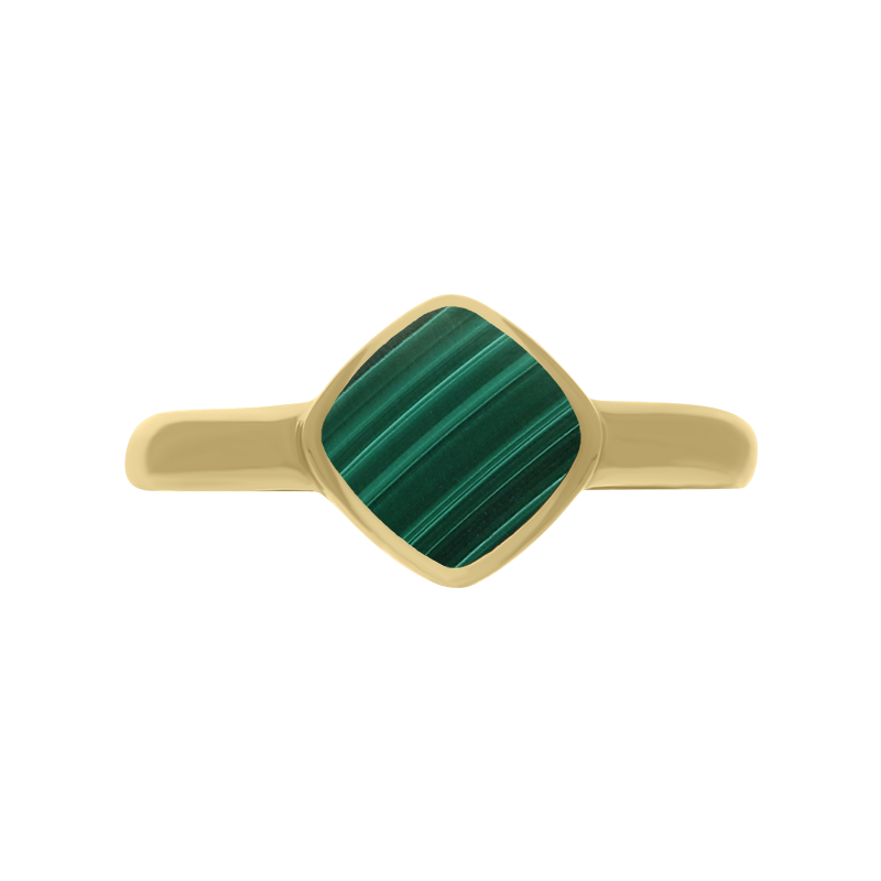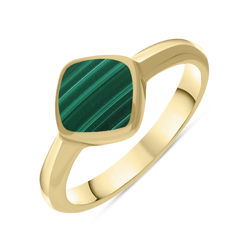 9ct Yellow Gold Malachite Curved Square Cushion Ring, R406