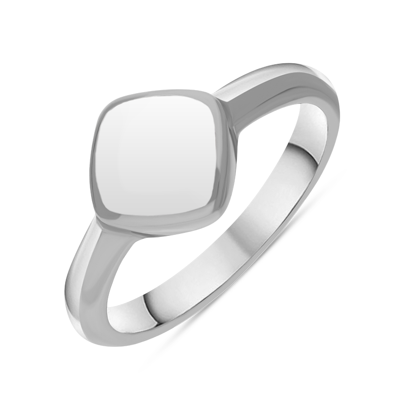 Part of our handmade Heritage jewellery collection, this simple yet stunning ring features a highly polished cabochon of hand carved white Bauxite, framed into a cushion shaped sterling silver setting on a classic band, making this ring perfect for everyday wear.