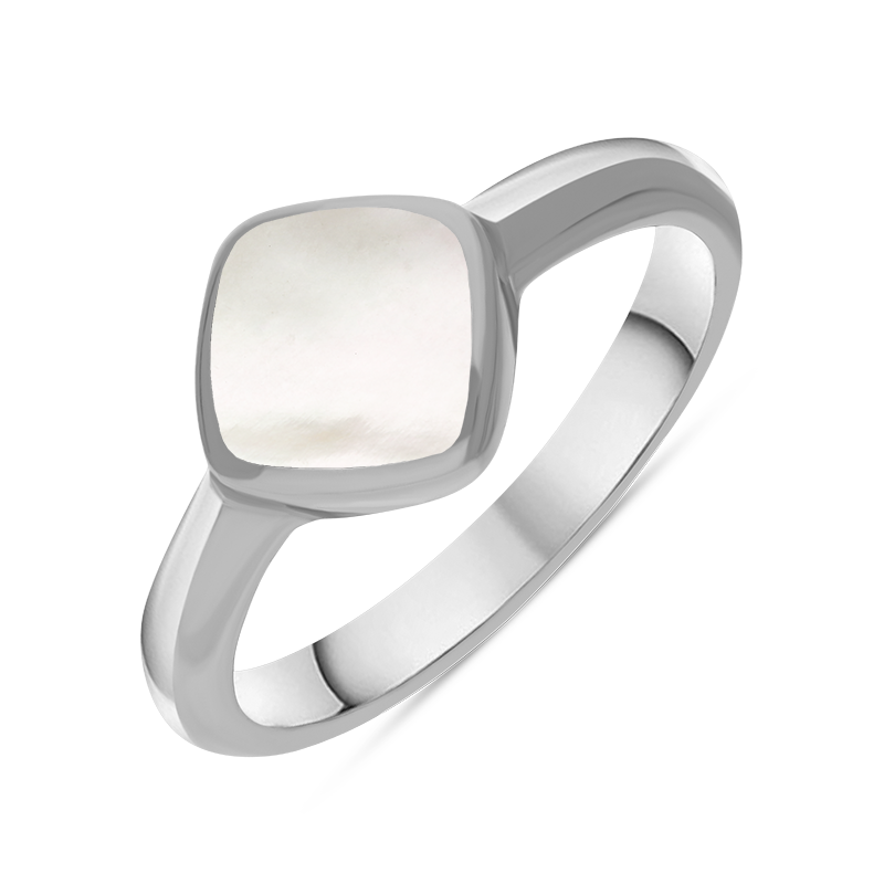 Sterling Silver Mother of Pearl Cushion Ring, R406.