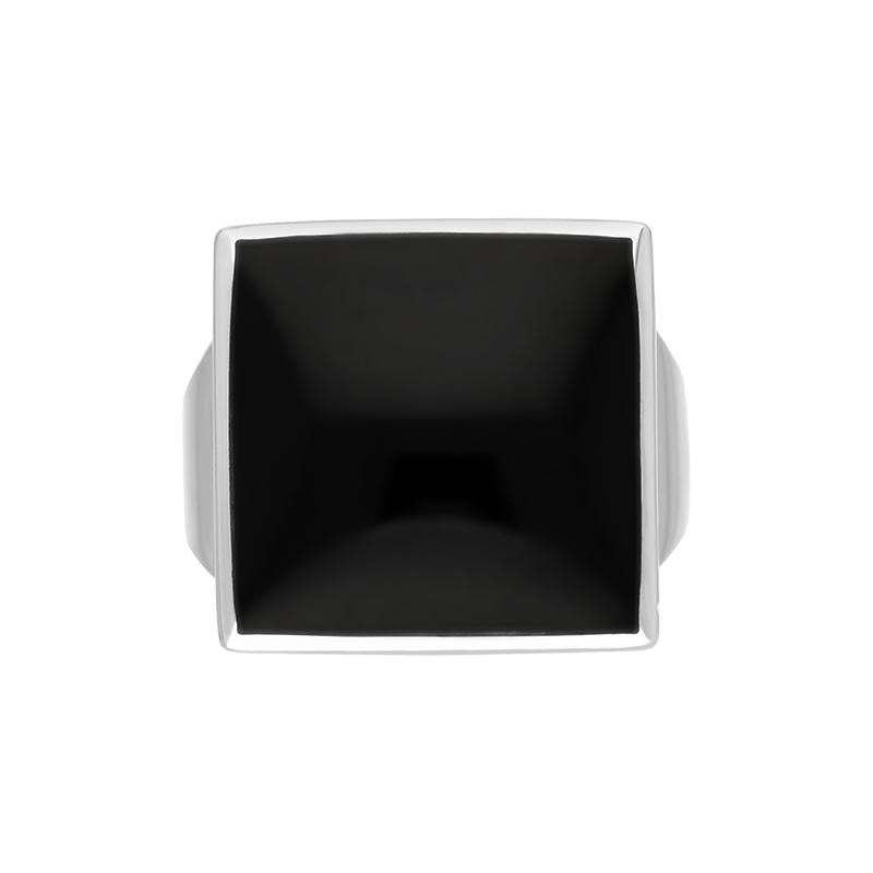 18ct White Gold Whitby Jet Small Square Ring, R603.