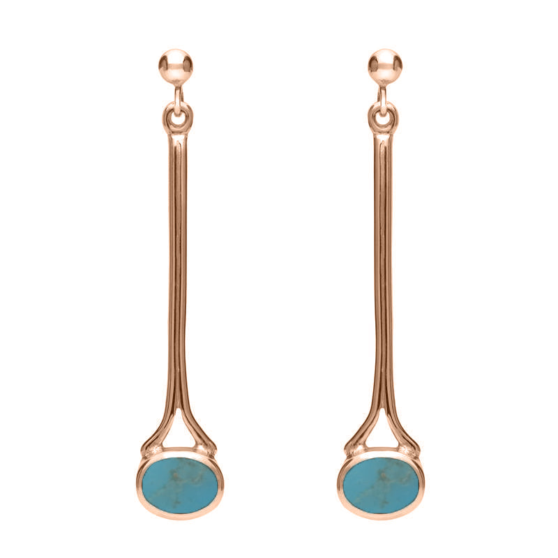 9ct Rose Gold Turquoise Long Drop Earrings. E094.