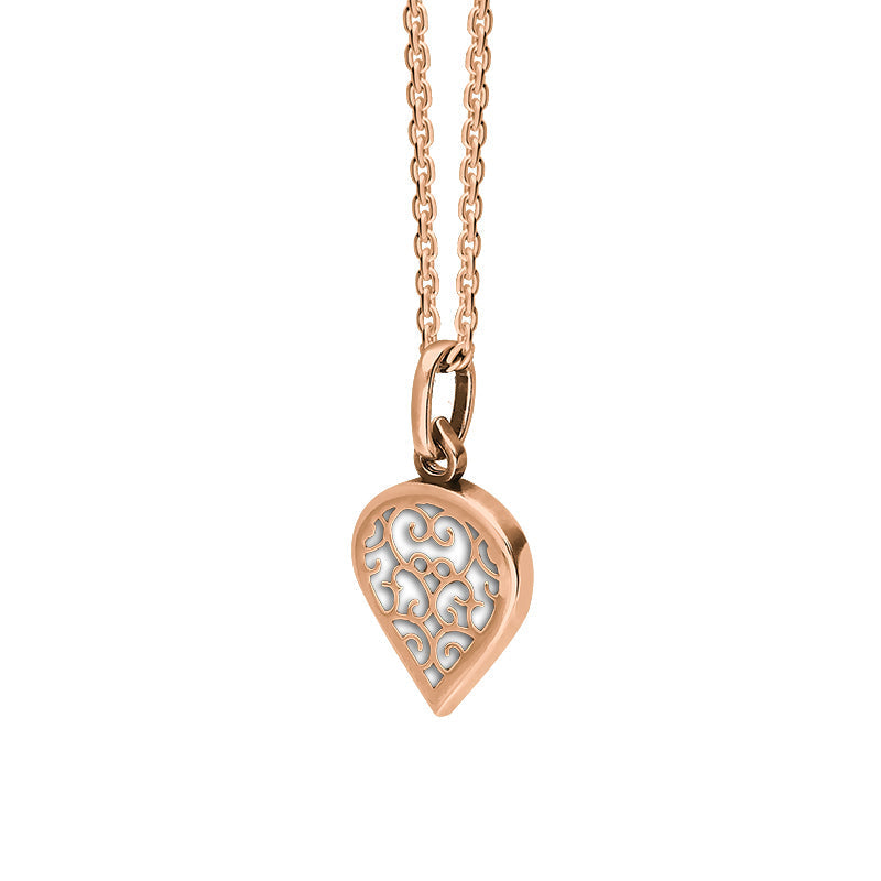 18ct Rose Gold Bauxite Flore Filigree Small Heart Necklace. P3629.