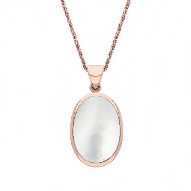 18ct Rose Gold Blue John White Mother Of Pearl Small Double Sided Fob Necklace, P832.