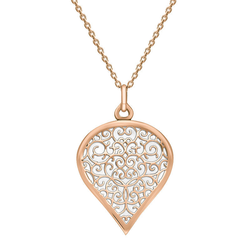 9ct Rose Gold Bauxite Flore Filigree Large Heart Necklace. P3631.