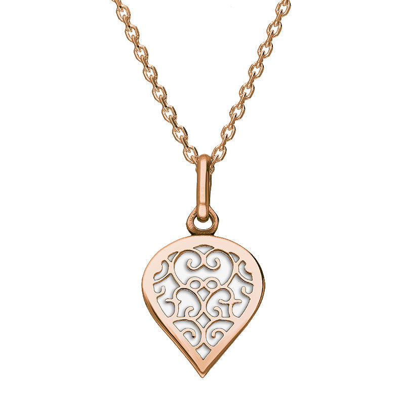9ct Rose Gold Bauxite Flore Filigree Small Heart Necklace