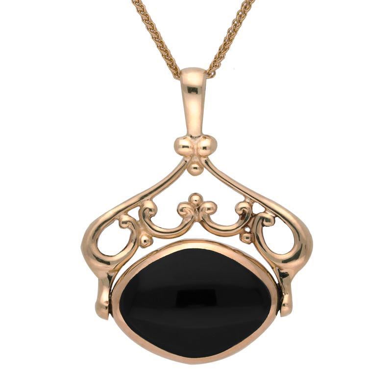 9ct Rose Gold Whitby Jet Blue John Double Sided Swivel Necklace, P116/9.