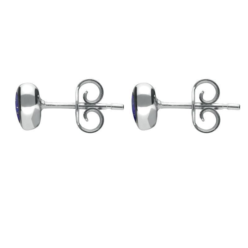 These romantic stud earrings feature beautiful heart shaped cabochons of the finest natural Lapis Lazuli which are framed in sterling silver and highly polished for a smooth, contemporary finish. Completed with secure sterling silver post and butterfly fittings.