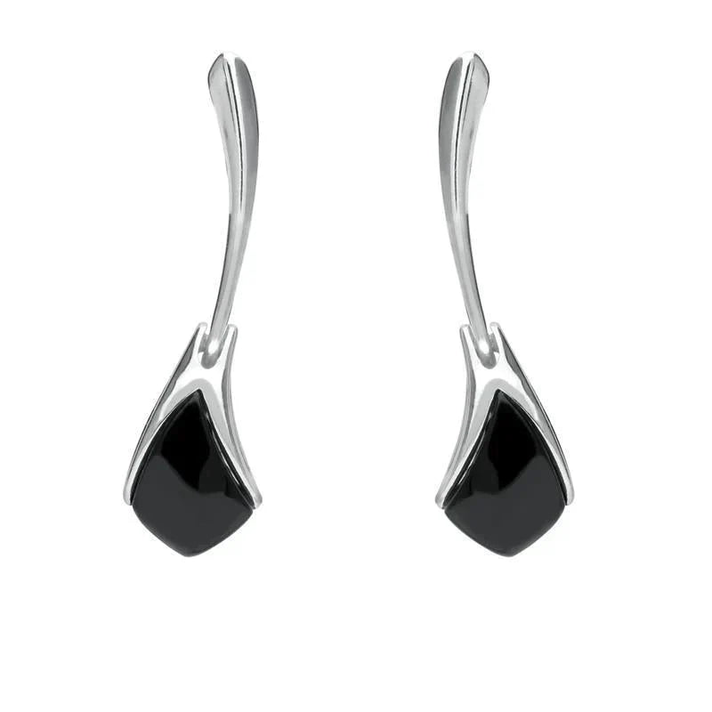 Sterling Silver Whitby Jet Curved Tapered Drop Earrings, E1798