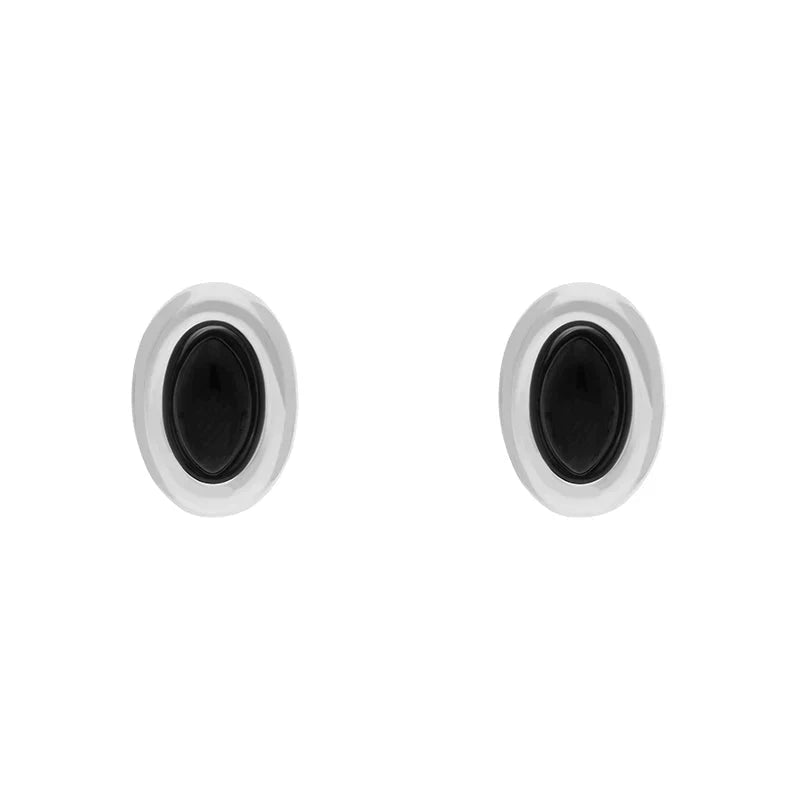 Sterling Silver Whitby Jet Small Oval Stud Earrings