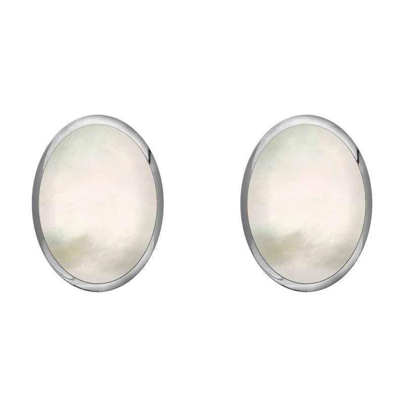 Sterling Silver White Mother of Pearl 8 x 10mm Classic Large Oval Stud Earrings, E007