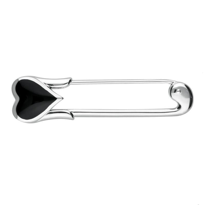 Sterling Silver Whitby Jet Essence Heart Safety Pin Brooch