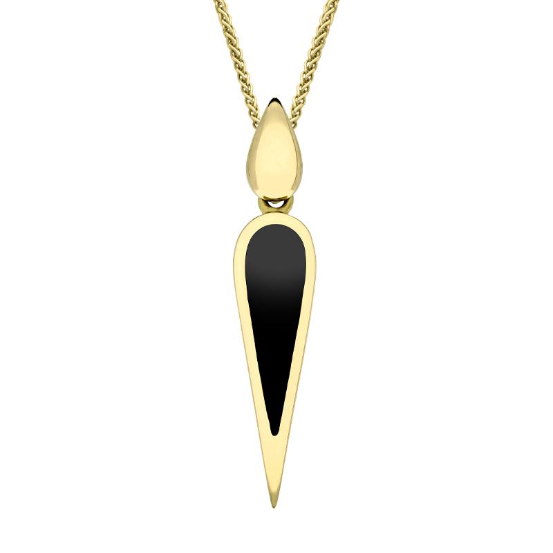 9ct Yellow Gold Whitby Jet Toscana Slim Pear Drop Necklace, P1612.