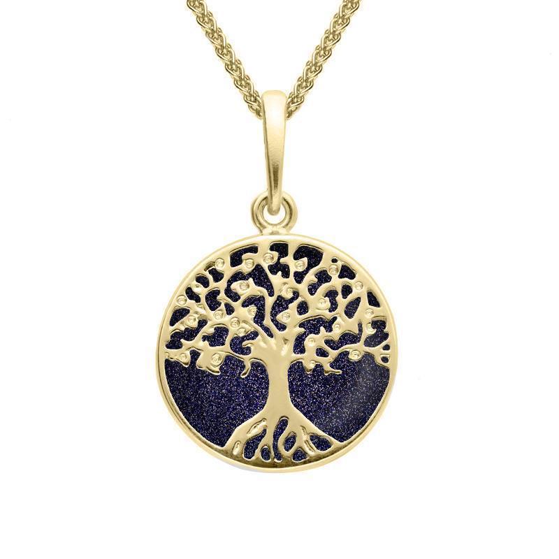9ct Yellow Gold Blue Goldstone Small Round Tree Of Life Necklace, P3339.
