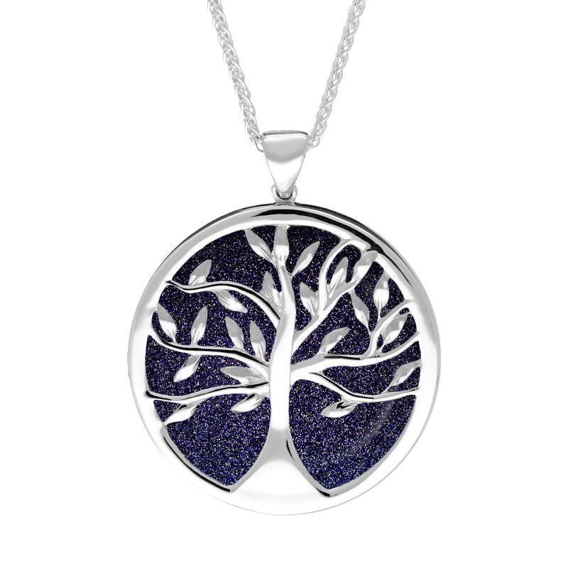 Sterling Silver Blue Goldstone Large Round Tree of Life Necklace, P3418.