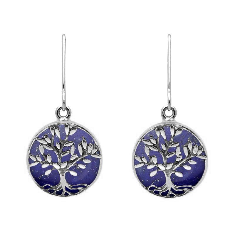 • Sterling Silver Lapis Lazuli Round Large Tree of Life Leaves Drop Earrings - E2427 (TOL-183)