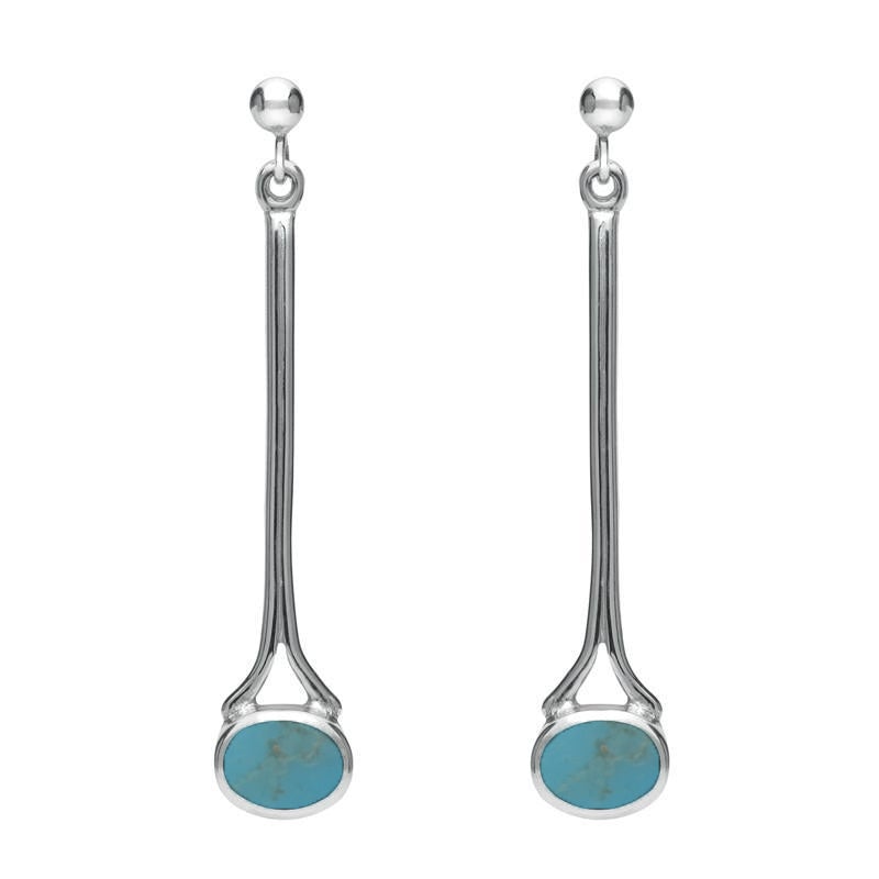 • 18ct White Gold Turquoise Long Drop Earrings - E094 (HER-5274)