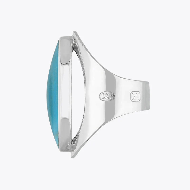 Sterling Silver Turquoise Hallmark Large Oval Ring. R013_FH.