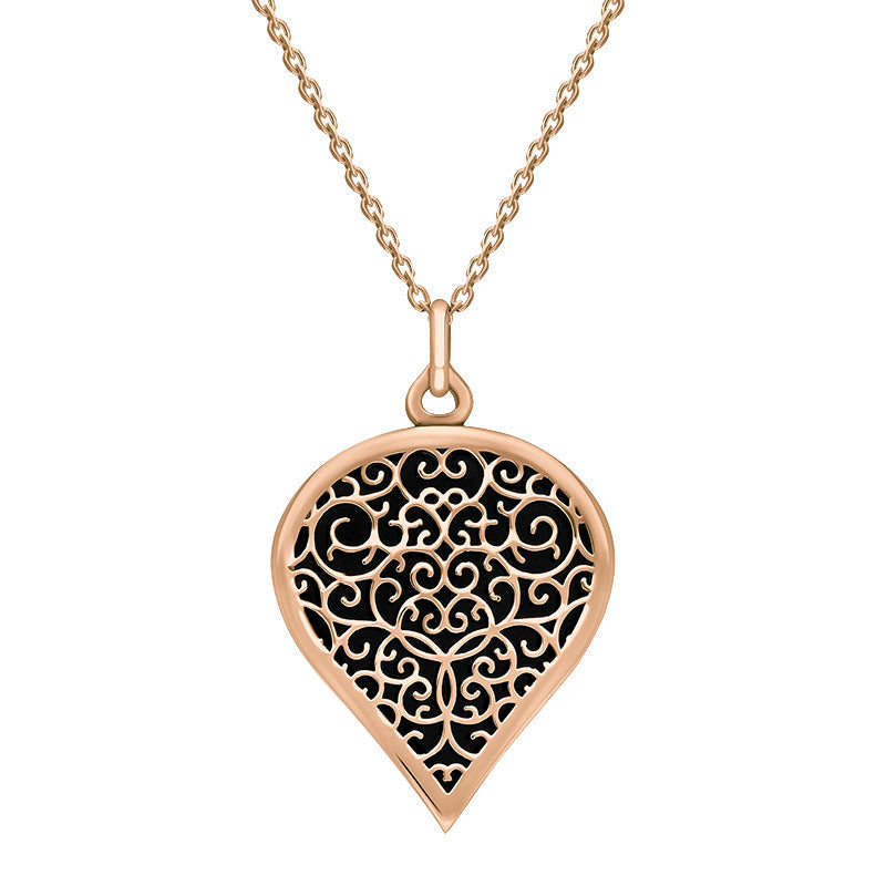 • 9ct Rose Gold Whitby Jet Flore Filigree Large Heart Necklace - P3631 (FLR-120)