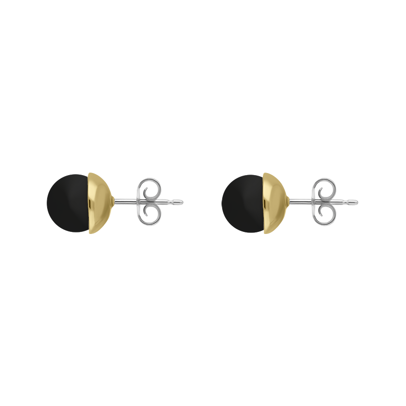 • 9ct Yellow Gold Sterling Silver Whitby Jet Stepping Stones Bead Cup Stud Earrings - E1370 (SPS-961)