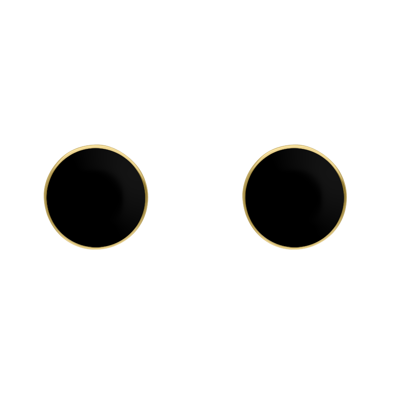 These stud earrings feature highly polished genuine Whitby Jet set in 9ct yellow gold frames with sterling silver post and butterfly fastenings.