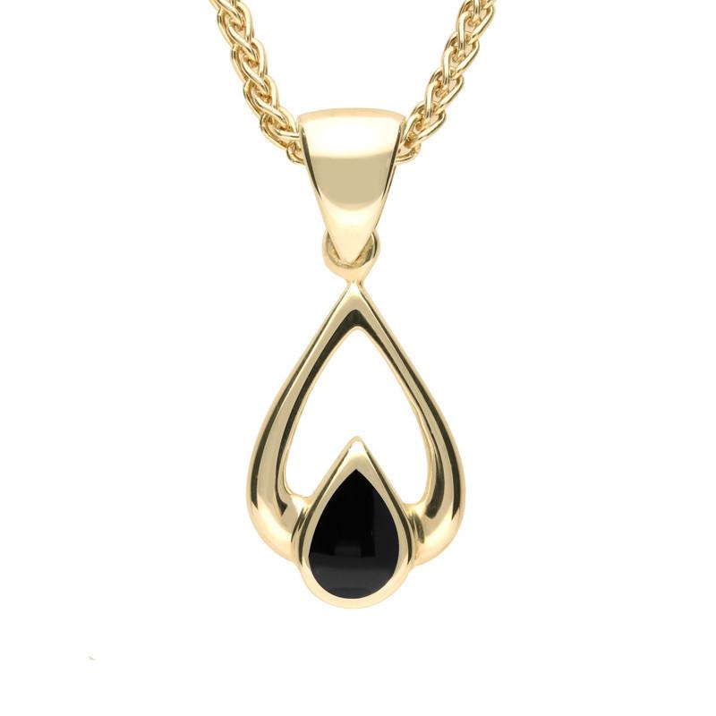 • 9ct Yellow Gold Whitby Jet Tear Drop Necklace - P214 (00032577)