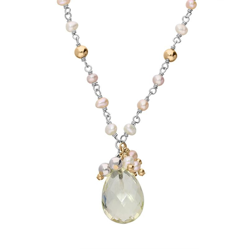 Sterling Silver Rose Gold Plated Oval Quartz Beaded Drop Necklace