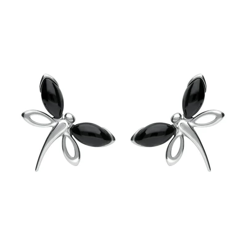 Sterling Silver Whitby Jet Butterfly Stud Earrings E1898.