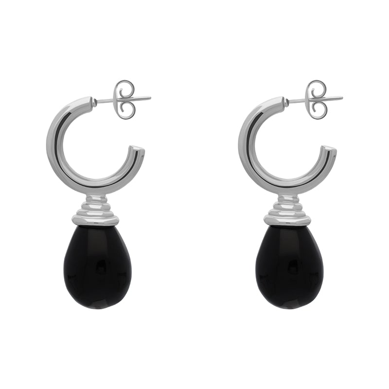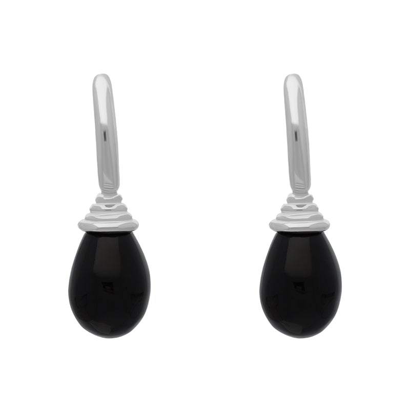 • Sterling Silver Whitby Jet Tear Drop Hoop Earrings - EUNQ0000912 (UNQ-4179)