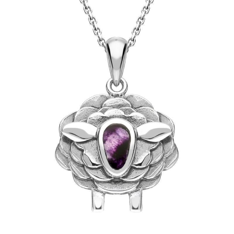 9ct White Gold Blue John Sheep Necklace, P3508.
