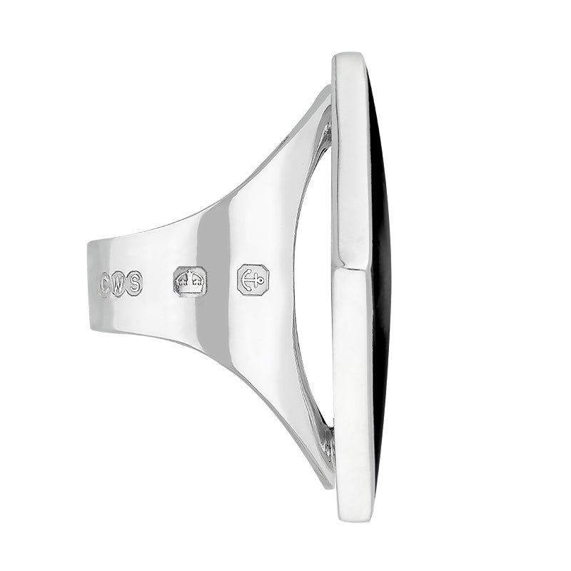 18ct White Gold Whitby Jet Hallmark Medium Rhombus Ring, R607_FH.